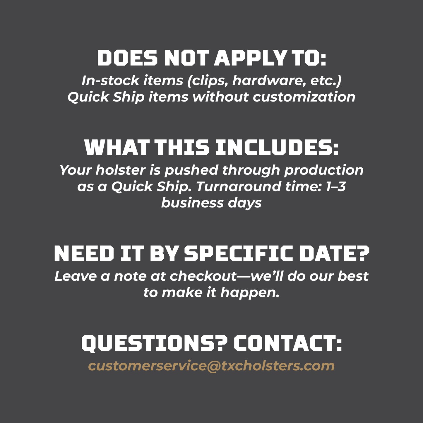 EXPEDITED PRODUCTION - BUILT TO ORDER HOLSTERS