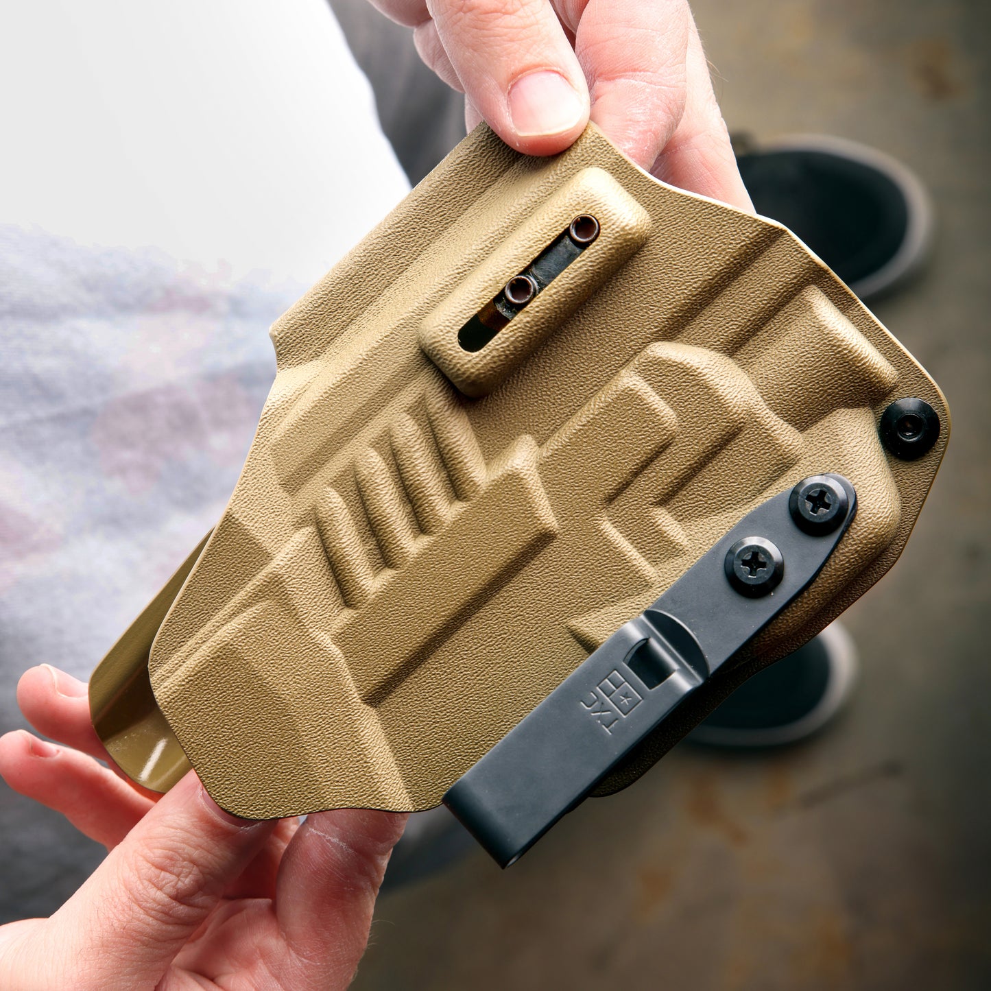 Say goodbye to the hassle of posts spinning loose or slipping out of place. Our “Double Post” is a custom hardware piece designed for easy clip installation and adjustment. Precision-crafted from black oxidized steel and proudly 100% made in Texas, it’s built to work seamlessly with our holsters — it comes standard with the CVRT holster, and it's compatible with holsters from other brands. Durable, reliable, and purpose-built for your carry setup.