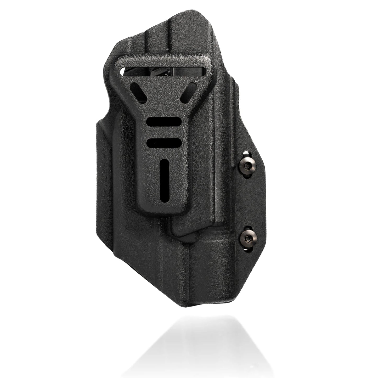 What sets the OVRT holster apart is its distinctive extended blocking and hole pattern on the rear, designed to accommodate a wide range of mounting options from reputable brands such as Safariland, G-Code, Blade-Tech, and others. This versatility enables its utilization in various scenarios, whether it be for competitive shooting, range practice, or duty purposes.
