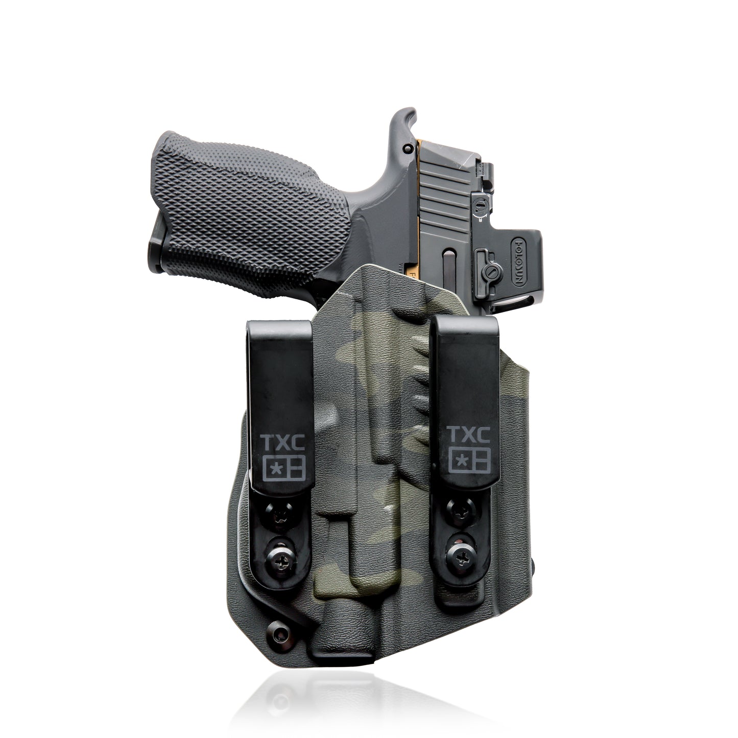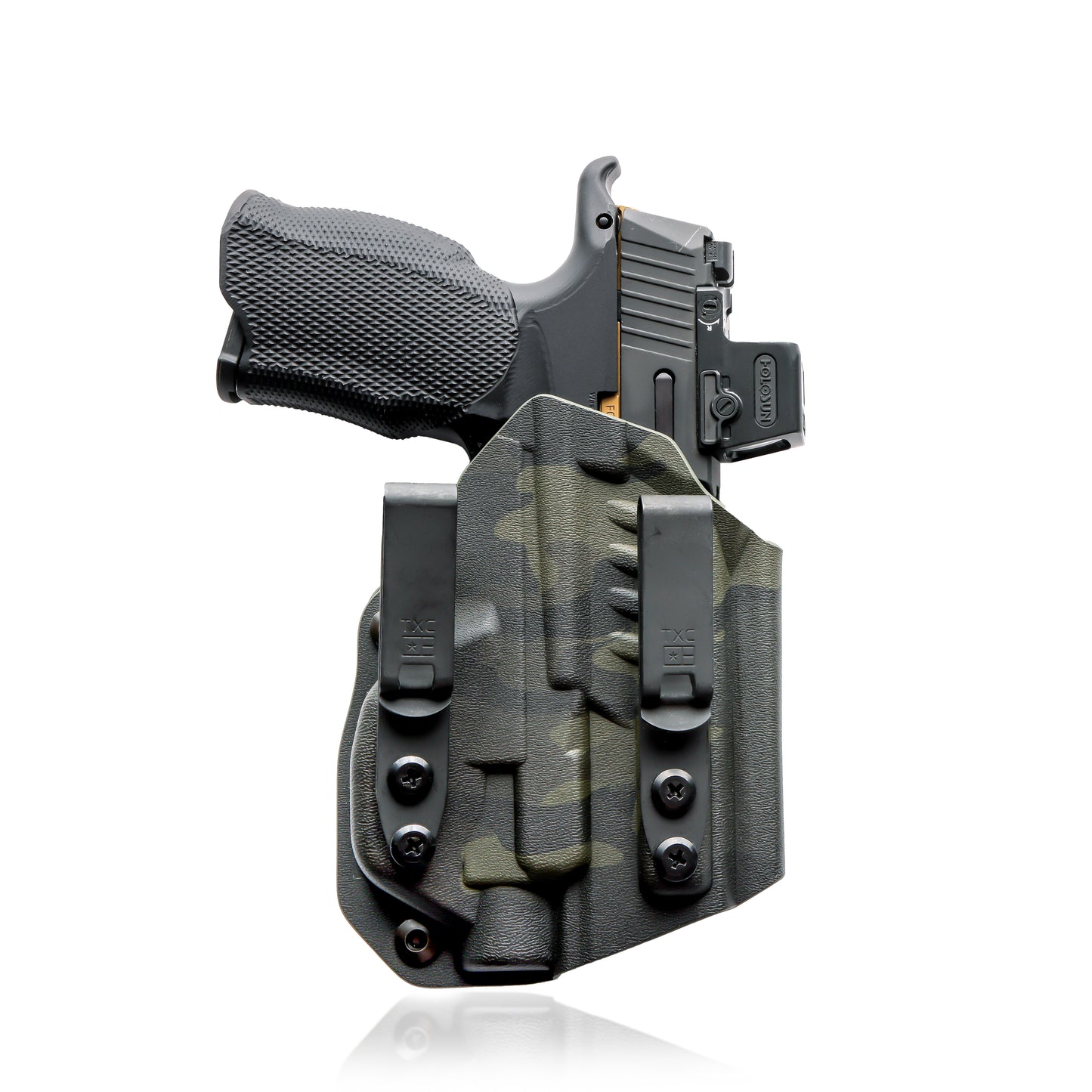 Introducing the CVRT Holster. This holster represents the pinnacle of AIWB carrying solutions. Crafted with precision, from .093" Kydex material, this system is designed for uncompromising durability and versatility. The holsters standout features are its integrated blocking to rotate the pistol grip into the body in addition to providing standoff from the belt line to access a full grip from concealment.