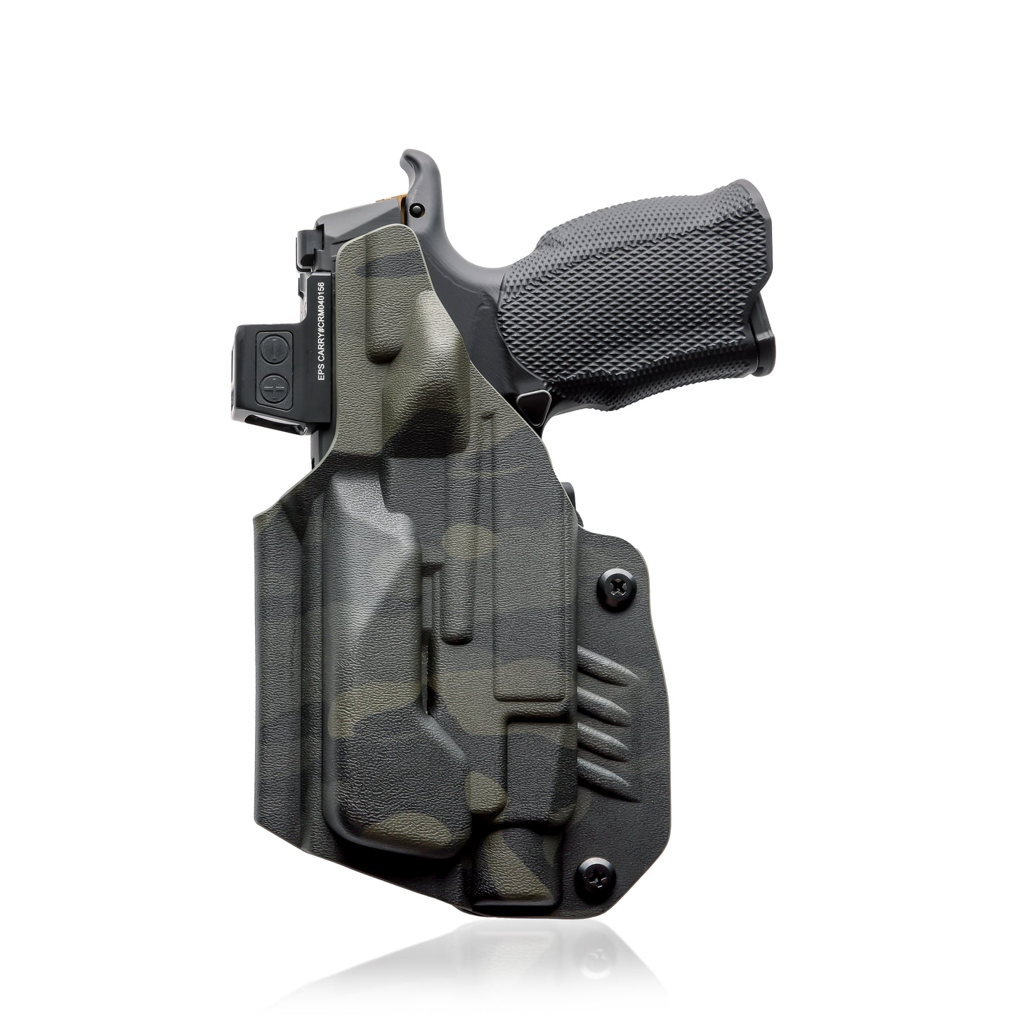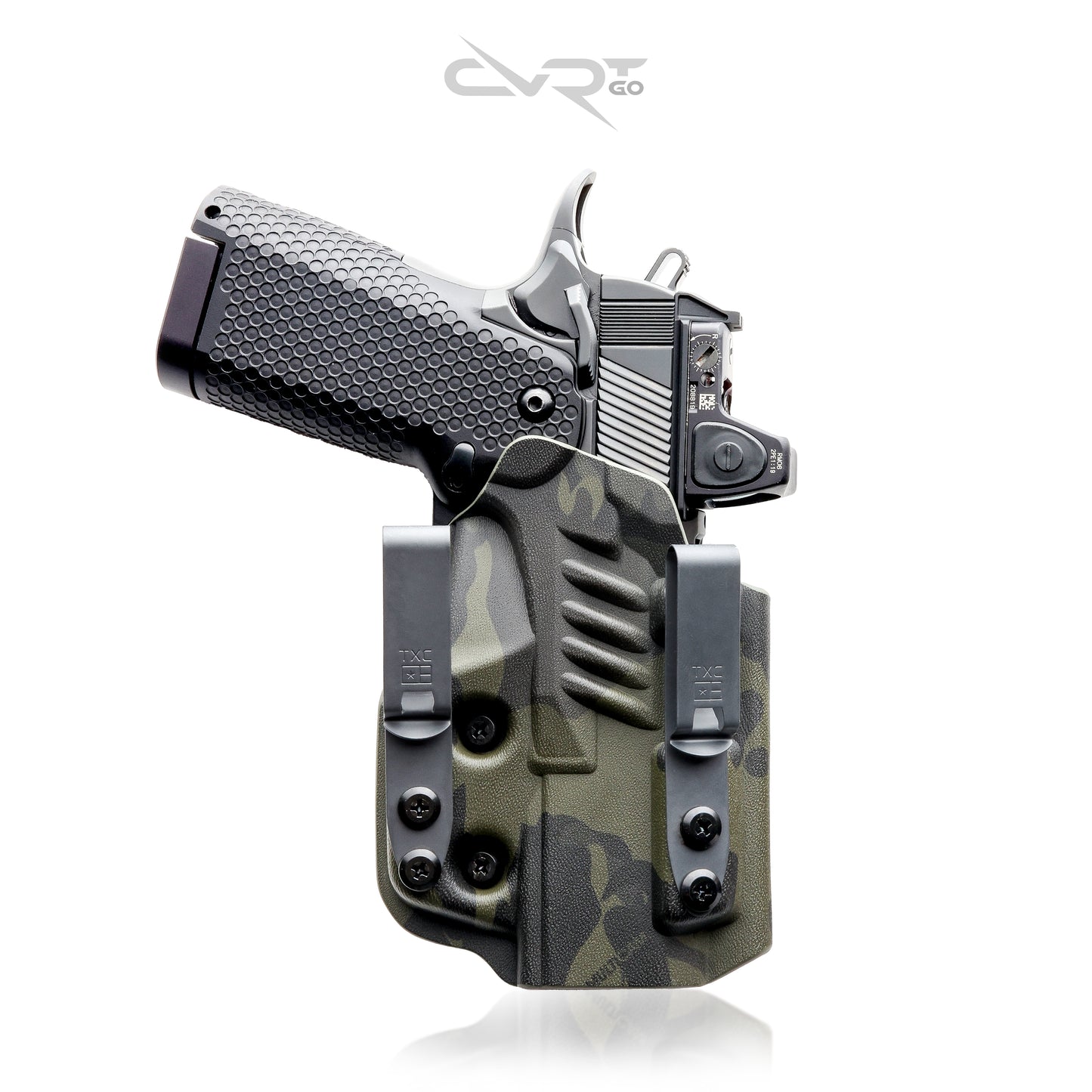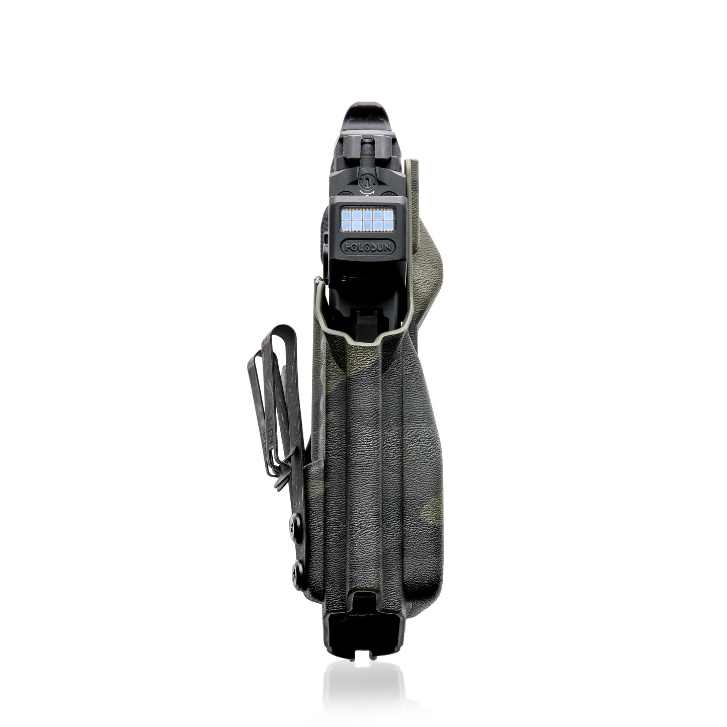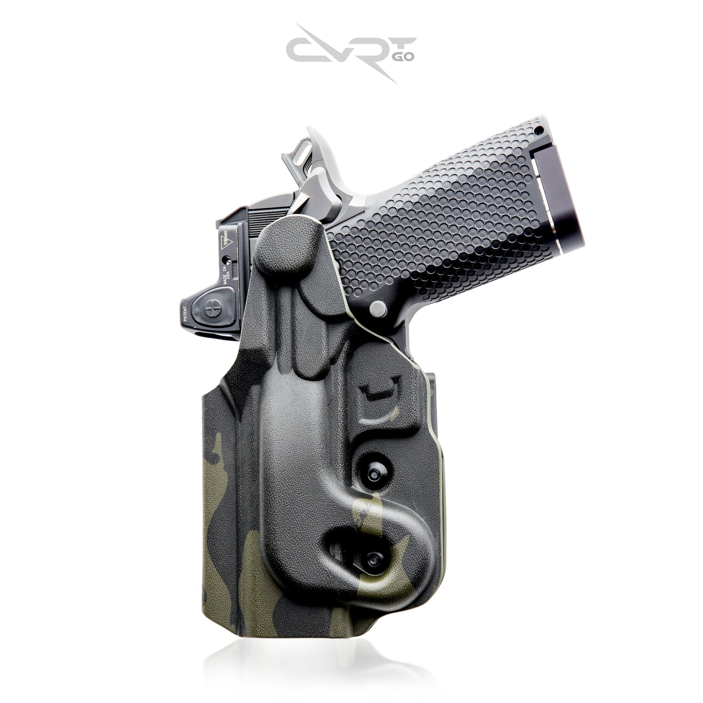 Utilizing slotted attachment channels, users have the power to customize the angle and ride height of their holster for a tailored fit. Whether you're a competitive shooter, law enforcement professional, or firearm enthusiast, the CVRT holster ensures quick and reliable access to your pistol, enhancing your shooting experience to a whole new level.
