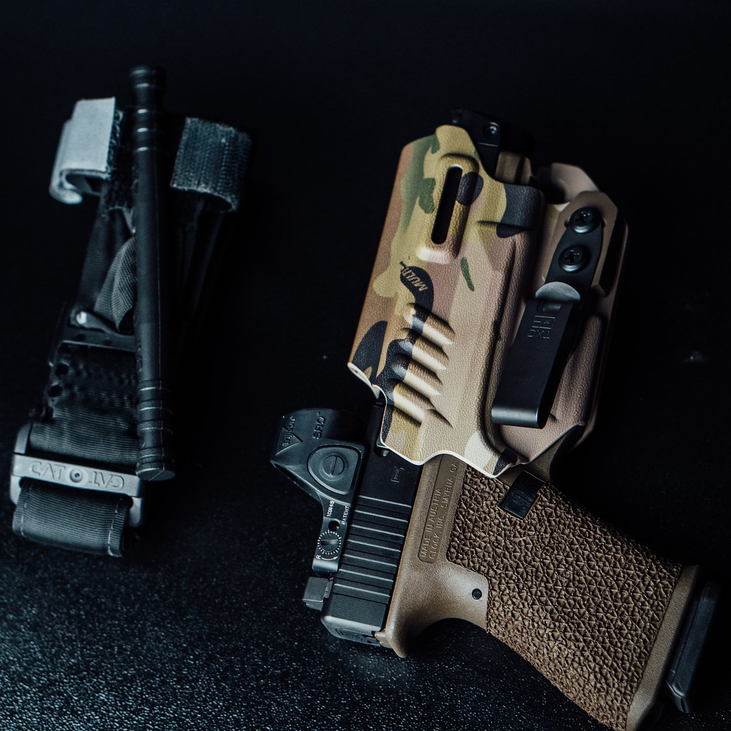 The Gen 7 CAT utilizes a durable windlass system with a patented free-moving internal band providing true circumferential pressure to the extremity. Once adequately tightened, bleeding will cease and the windlass is locked into place. A hook and loop windlass retention strap is then applied, securing the windlass to maintain pressure during casualty evacuation.